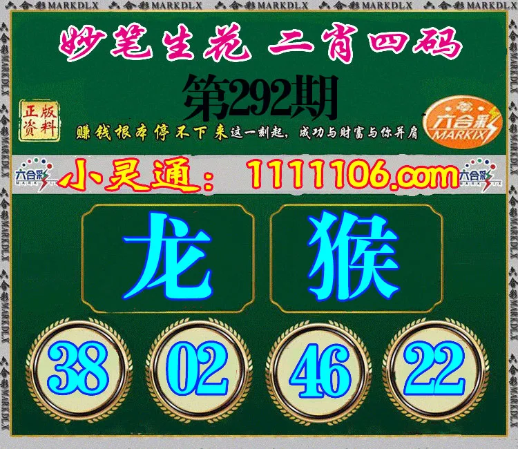 292期:✨妙笔生花✨【二肖4码】【龙,猴|38,02,46,22】开:龙02 准