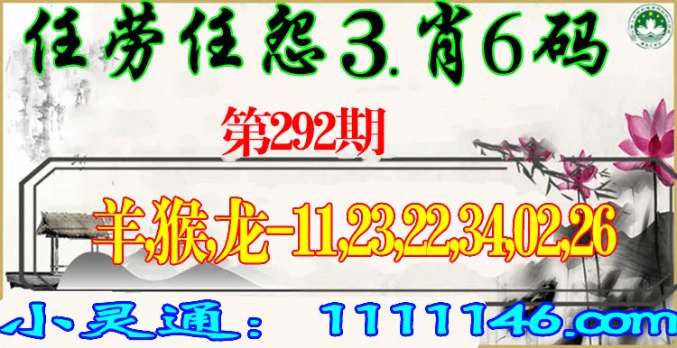 292期:✨任劳任怨✨【三肖6码】【羊,猴,|11,23,22,34,02,26】开:龙02
